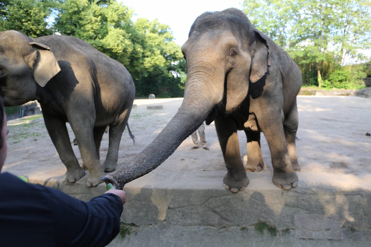 Seitdem wollte Reinhard den Traum immer noch einmal nachholen und einen Elefanten füttern. 70 Jahre später war es dann so weit und mit zitternden Händen, aber mit einem breiten Lächeln näherte sich Reinhard den Tieren. Dieses Mal zog Reinhard nicht die Hand zurück und der graue Riese griff mit seinem Rüssel sanft das Futter aus Reinhards Hand. Für den 75-Jährigen ging ein Kindheitstraum in Erfüllung.