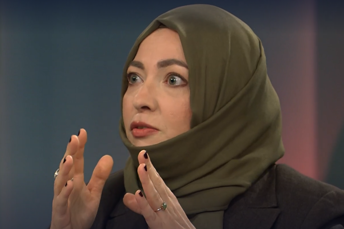 Die verschleierte Rundfunkrätin relativiert die „Kalifat“-Forderung der Demonstranten weiter: „Die Frage ist: Wie versteht man solche Slogans?“ Sie fordert, dass man das differenzierter betrachten müsse. An „hart aber fair“-Gast Mario Voigt von der CDU gewandt, kritisierte sie die Entwürfe zum neuen Grundsatzprogramm seiner Partei.