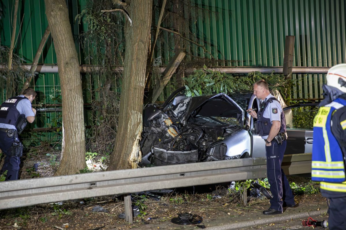 Ein Autofahrer wurde Zeuge der dramatischen Ereignisse und alarmierte den Rettungsdienst kurz vor 1.30 Uhr. Als die Rettungskräfte am Unfallort im Ruhrgebiet eintrafen, bot sich ihnen ein Bild der Verwüstung. Fahrzeugtrümmer lagen quer über die Straße verstreut. Der Beifahrer (28) hatte es zu diesem Zeitpunkt aus eigener Kraft aus dem Luxus-SUV geschafft – der 33-Jährige lag bewusstlos im Auto.