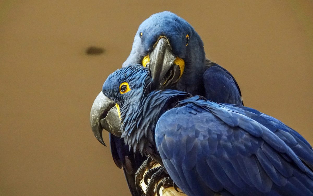 „Wir freuen uns sehr über einen besonderen Bruterfolg“, teilt der Zoo auf Facebook mit. „In der 2020 fertiggestellten Freiflugvoliere Aralandia ist hinter den Kulissen erstmals ein Küken bei den Hyazinth-Aras geschlüpft.“