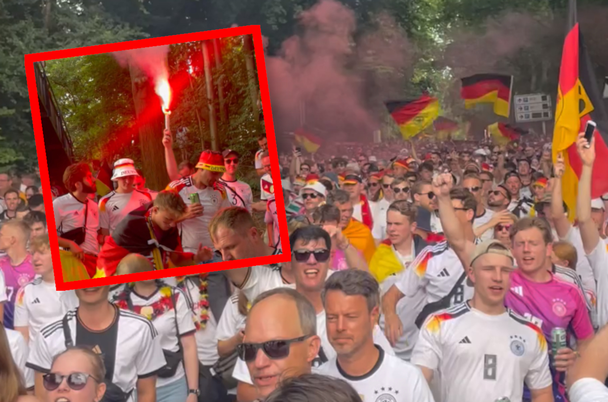 Auch mit Unterstützung von Straßen-Bands und dem Saxophon spielenden Schon-Jetzt-Kultfan Andre Schnura ging auf Dortmunds Straßen die Party. Der Fanmarsch wurde zum bisherigen Höhepunkt der Nationalelf-Fankultur bei dieser EM 2024. Auf dem weg zum BVB-Stadion sangen, hüpften und eskalierten die Fans komplett.
