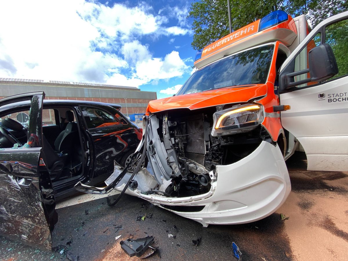Am Mittwochvormittag (29. Mai) gegen 11.50 Uhr hat es in Bochum plötzlich heftig gekracht. Ein Rettungswagen und Auto sind auf der Bessemerstraße Höhe Henriettenstraße im Baustellenbereich ineinander gecrasht!