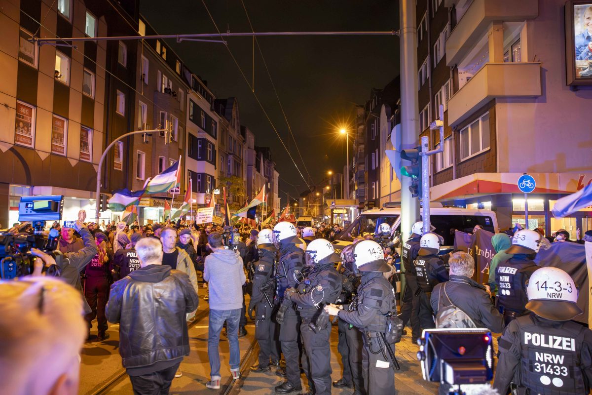 In der City hatten sich zum einen Demonstranten versammelt, die für die Interessen der Palästinenser auf die Straße gehen wollten. Zum anderen hatten die Jusos im Ruhrgebiet eine Demonstration gegen den Hamas-Terror angemeldet. An einer Straßenkreuzung an der Wanheimer Straße soll es dann zu Auseinandersetzungen beider Gruppen gekommen sein.