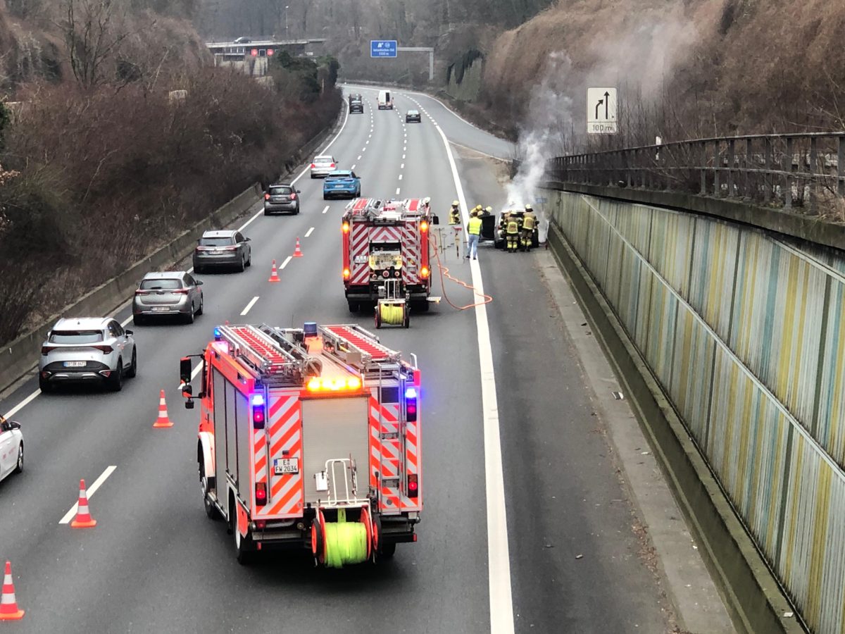 Die Feuerwehr Essen eilte mit einem Großaufgebot zur Unglücksstelle. Zunächst hieß es, dass der brennende Wagen sich direkt unter der Autobahnbrücke an der Krayer Platte befinde. Das bestätigte sich zum Glück nicht. Das Bauwerk hat also keinen Schaden genommen. Doch das Unglück sollte für Chaos auf der A40 sorgen.