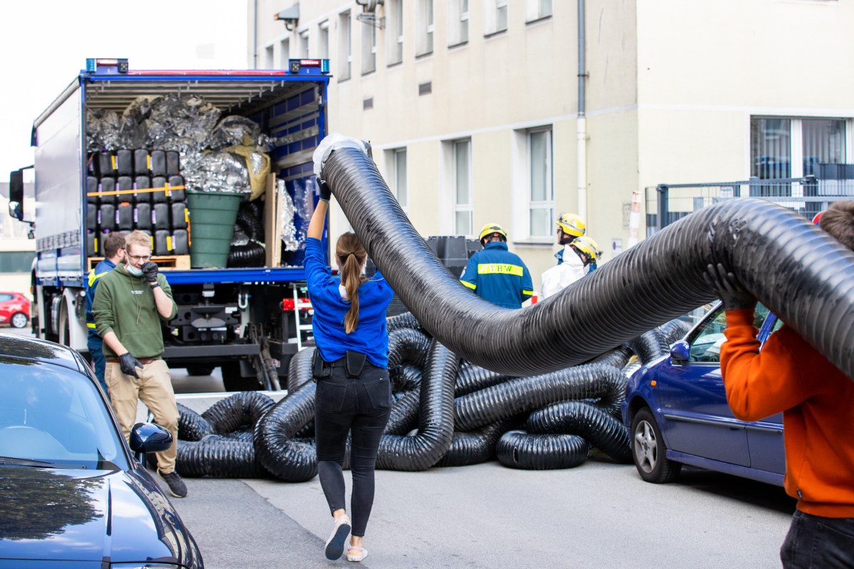THW-Mitarbeiter luden das gesamte Equipment, darunter Technik, Pflanzerde, Dünger und Elektrokabel in einen Lastwagen. Der aufwendige Einsatz soll mehrere Stunden gedauert haben.